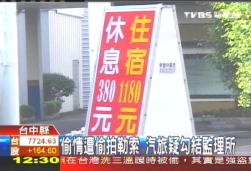 警方查出,嫌犯可以任意在汽车旅馆房间内,安装针孔摄影机,怀疑和旅馆人员勾结,内神通外鬼,提供被害人车号,嫌犯再拿着偷拍光碟,向当事人勒索30万元,因此不排除有监理站人员或是警察,配合查汽车车主资料,外泄给偷拍嫌犯,用来恐吓取财。
