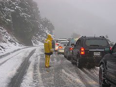 陈昌男说,路面积雪量大,警方于鸢峰实施交通管制,车辆需加挂雪链才能行驶,昆阳以上至松雪楼车辆无法通行,改为徒步赏雪区。