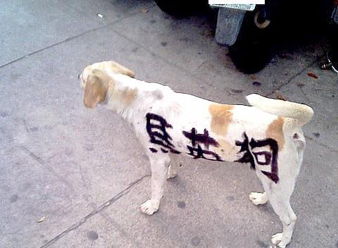 中新网4月14日电 据TVBS报道,台湾政治战火延烧到流浪狗身上,台中中港转运站前几天出现一只白底黄花的流浪狗,狗身上被人用黑色喷漆写了“马英狗”三个字,民众感觉有人把对政治的不满,发泄在狗身上,实在很不人道,如果碰到护马人士,这只狗启不是要遭殃。