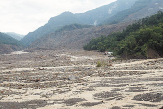 这些崩落土石同时在坡脚底部的楠峰桥处,堆积成一个临时性的堰塞土坝,暂时阻断旗山溪的水流,但在50分钟内即蓄满、溃决,含沙浓度高达38%的泥流狂冲而下,随即掩埋了小林村南侧聚落,成为第二道致命的关键。