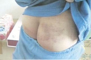 纪小弟的屁股红肿淤青、左右两边都是,让他连坐下来都疼痛不已,这是爸爸拿皮鞭抽打的结果,他的耳朵还被咬伤,甚至看得到齿痕,爸爸如此狠心,纪小弟犯了什么错?校方说,“唐诗没有背好之类的,家长是在有喝酒的状况下。”