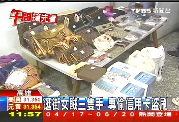 中新网4月23日电 据TVBS报道,逛街买东西时,你有被扒走信用卡盗刷,却毫不知情的经验吗?高雄警方就逮捕一名曾经当过店员的女惯窃,她专门利用顾客买东西,疏于防范的时候窃取信用卡盗刷,犯案至少20件,盗刷金额上百万(新台币 下同),除了偷信用卡,她也会偷名牌包。