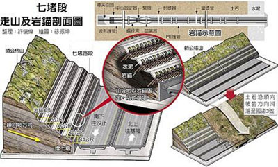 中新网4月27日电 据台湾《中国时报》报道,岛内交通要道“国道三号”七堵段山体崩塌,疑因滑动规模超出岩锚防护设计。台“交通部国道新建工程局”26日调出当年设计规划图,经比对灾变现场,发现地质和滑动情况今昔并无不同,疑因山崩能量超出当初防护规模,连打进30多米深的岩锚,也挡不住大自然反扑力量。