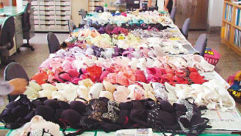 警方5日在分局清点内衣证物,民众以为警局举办母亲节“内衣特卖会”,得知是周多年来的“收藏”,忍不住骂“夭寿喔,偷这么多!”