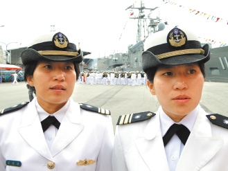 中新网5月9日电 据台湾联合报报道,台湾一对双胞胎少校姐妹陈静眉、陈静虹,从幼儿园到海军官校都同班,毕业后还曾同在同一艘军舰上服务,现在分别担任两舰的舰务长、作战长,因长得太像,生活中增添不少趣事。