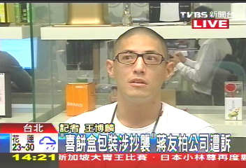 中新网5月10日电 据台湾TVBS电视台报道,蒋家第4代蒋友柏所经营的橙果设计公司,疑似将他人的美术著作用在喜饼包装、纸袋的设计图案,台北地检署今天侦查终结,依违反“著作权法”将橙果公司及苏姓设计师起诉,蒋友柏下午出面严正驳斥,还要反控对方诬告!