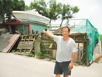 铁皮屋顶上,有艘长近七米白色小艇,是他五年前花二万元从高雄买来,用吊车吊上屋顶,“地球淹水时,可以坐上去逃命。”