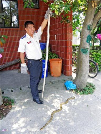 中新网5月19日电 据台湾媒体报道,大蛇吃小蛇,消防人员前晚捕捉2米长的臭青母时,它竟吐出肚中1米长的小臭青母,“抓一条送一条”十分罕见。