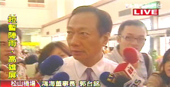 中新网5月26日电 据台湾TVBS电视台报道,大陆富士康厂区员工连续有11起跳楼事件,鸿海集团总裁郭台铭26日早亲往深圳,携媒体和心理医师前往协助处理。郭台铭表示,担心跳楼事件,媒体的连续报导,恐怕给年轻人不良示范,产生“维特”效应,跳楼是会传染的,呼吁媒体能拿捏分寸。