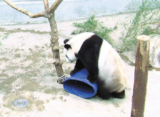 为了让它们为繁殖预做准备,动物园的保育员也想尽各种花招,诱使它们增加活动量。最近保育员提供大圆桶给圆圆玩耍,并在桶内预藏食物,让它为了找寻食物玩弄圆桶,圆圆对圆桶也很感兴趣,不时翻滚圆桶快跑、翻筋斗与扭转身体,玩累了就把圆桶当懒人沙发趴在上面,由于效果不错,将来也会提供给团团玩耍。动物园也特别将这段影片放在网站上供民众点阅。