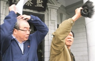 中新网6月8日电 据台湾“今日新闻”报道,有意参选大台南市议员的前台南扁友会会长黄永田,因为把掀掉国民党“立委”邱毅假发的照片做成名片,到处发送宣传,邱毅觉得受到侮辱提告,黄永田被判要在四家报纸头版的下方刊登一天道歉启事,黄永田不服气,强调不会登报道歉。
