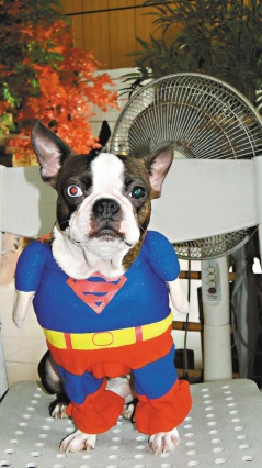 这只名为“大目仔”的波士顿,眼睛超大,灯光照射下,右眼红澄、左眼湛蓝;有洗车人士上门,“大目仔”都会仔细盯着,彷佛能看透客户的心思。古淑琴爱死了大目仔,甚至帮它制作“超人装”,有时端坐在椅子上,如同小号的太空超人,酷毙了。