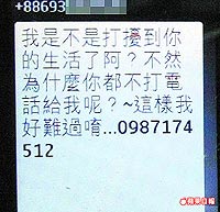 民众蓝先生昨日在台北市议员李文英陪同下出面控诉,他十七岁儿子前天凌晨收到“为什么你都不打电话给我呢?这样我好难过唷”短信,以为是同学而回拨,翌日接获电信业者通知暴增一万八千多元通话费。