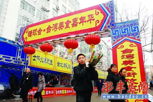 中新网3月5日电 据青岛市台办网站消息,3月1日,第21届糖球会在青岛海云庵正式拉开大幕,30万人首日热逛糖球会。在靠近糖球广场的蒙化路专门辟出一条台湾美食街,久负盛名的台北士林夜市的20余种台湾美食慕名前来赶会。此次参会的台湾美食很多原料都是专门从台湾运来的。其中将在上海世博会台湾馆中参展的“度小月担仔面”和“蚵仔煎”也现身糖球会,市民在家门口就可品尝到这两种“世博美食”。