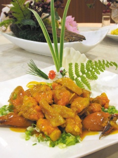吕文芳首推10道经典菜,其中几近失传的豆乳蟳,是早期文华庄出名的招牌菜,要让苦瓜的苦味不渗入蟹肉里,却又得让豆腐乳的甘醇融于苦瓜与蟹肉中,还有手工菜菊花燕窝、旦黄大虾、桂花鱼翅等。过去北投各酒家的传奇菜蓬莱排骨酥,是当地摩托车专送至各酒家的指名下酒菜,如今也再度重现。