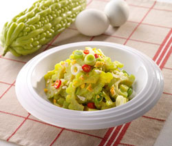 苦瓜含有丰富的维生素,只是苦瓜味道苦,许多大人、小孩都不爱,让妈妈们实在伤透脑筋;但一道客家小炒“苦瓜黄金蛋”打破许多人不吃苦瓜的惯例,事前的准备工夫也很简单,只要抓到降低苦瓜苦味的小撇步,马上成为一道可口佳肴;尤其若能采用萃取自上等天然鲜鸡的鲜鸡晶来调味,不但能提升菜肴的鲜甜度,经枢纽科技顾问公司专业证实,在等咸度下,还可以减少40%的盐份摄取,对人体健康较无负担。