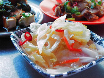 除了水饺外,这里也有卖牛肉面!不过,好吃的小菜很多,最推荐的是清甜爽口的泡菜,吃起来酸酸的带些甜味,很多早期卖面点的“眷村”也有这样味道的泡菜。只是老板很有饭店经验,所以即使在小菜的呈现上,配色跟口味都很细致高级。