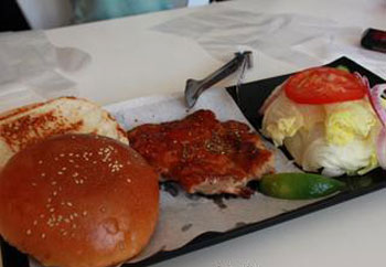 中新网5月14日电 据台湾“今日新闻”报道,台南自助汉堡店“Yellow Bee”,份量十足,每个汉堡端上来都是一大盘,很有震撼感,附上吃手扒鸡的塑胶手套,顾客必须自行动手组合,让吃之外多了DIY的乐趣,也可以挑掉不爱吃的部分,算是很有趣的吃法。