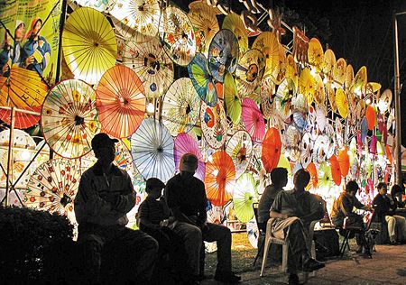 高雄美浓的制伞技艺最初来自大陆广东,为纪念纸伞由广东梅县传进,美浓的店名多以“广”字为头,例如广进胜、广华兴和广德兴等。家传三代广华兴老板曾启华说,“50年代前,油纸伞与烟叶为美浓重要收入来源,每年产销量逾两万把,产值超过4000万元。”