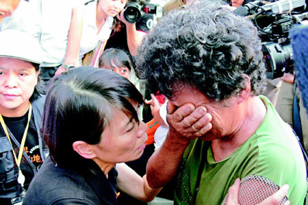 另外几个地方,同样有许多声泪俱下的灾民,她依然不断轻抚灾民的肩、背,抚慰大家:“我们一起面对困难,要坚强、勇敢地站起来,走出难关。”