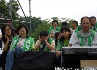 至于谢长廷,也因为精神不济,先到后台稍做休息,而静坐舞台上,仅剩党主席蔡英文和游锡堃率领部分党公职坐在台上,听着新闻关心时事。此外,现场也可发现,部分“立委”因静坐一宿,体力已超出负荷,纷纷在舞台上打起瞌睡,有的人甚至悄悄地消失不见了。