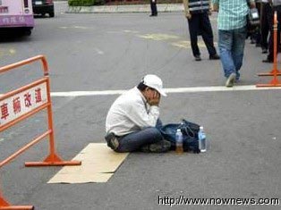 眼见静坐人数减少,台北市警方开始进行柔性劝导,希望静坐民众都能往凯道移动,将中山南路景福门路段净空,给周一早上赶上班民众一个方便,不过现场有一位民众,认为自己已经坐在凯道上,所以并不愿意离开,就连民进党纠察队前去劝导,也无动于衷,对照静坐大队,俨然成为一个“静坐钉子户”。