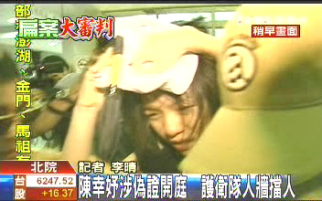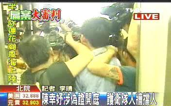 护卫队作风强悍,组成人墙,用雨伞一路护着陈幸妤,不让媒体拍到陈幸妤的表情,躲在雨伞下、戴着渔夫帽的陈幸妤,似乎被雨伞戳到脸,表情不悦,一度不耐、吼叫出声,而开庭结束离开时,又再次爆发冲突,目前赵建铭正在接受侦讯当中。