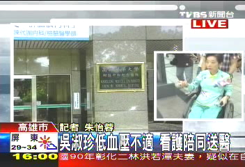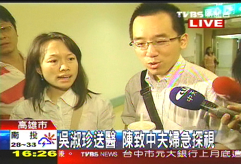 而原本在民进党高雄市党部协助提供法律咨询的陈致中,在听闻母亲因为血压过低紧急送医后,也随即赶往医院探视。