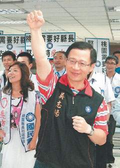 吴志扬则是昨天上午10时从中坜服务处出发,带着青年军徒步游行,他们高举着“桃园需要好县长、坚定支持吴志扬”标语,再从中坜火车站转搭火车到桃园市,步行至桃园县党部。