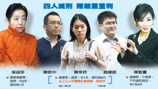 法界人士分析,陈致中另涉扁家洗钱案,赵建铭还被控内线交易,既然他们对伪证案选择认罪,最好的因应之道是尽速执行完毕;否则如果洗钱案、内线交易案被判徒刑确定,将失去以社会劳动取代入监的机会。