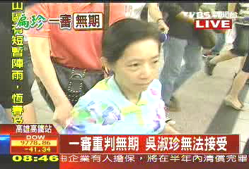 在扁案宣判后,吴淑珍第一次露面,她在儿子陈致中陪同下,搭乘8点半高铁北上,到看守所探望陈水扁。