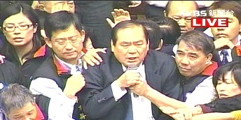 蓝绿双方气氛火爆,你推我挤,还有“立委”爬上主席台,意图打断会议进行,也有“立委”连忙把同仁架开,避免进一步肢体冲突。