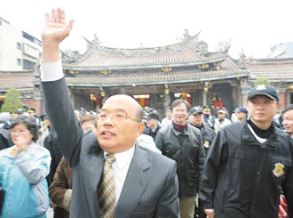 中新网3月3日电 据台湾TVBS报道,台当局前“行政院长”苏贞昌于3日上午11点到台北市保安宫参拜,神情肃穆,在神明见证下宣布角逐台北市长。