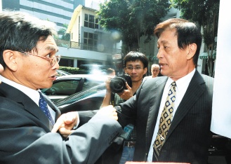 眼见施颜祥要离开“经济委员会”会场,王幸男、陈亭妃等民进党民代遂以“人海战术”,将施颜祥包围着,不让他离去。这时施颜祥也动气了,他边向前、边被“推着走”,同时嘴巴嚷着“怎么会这样”。