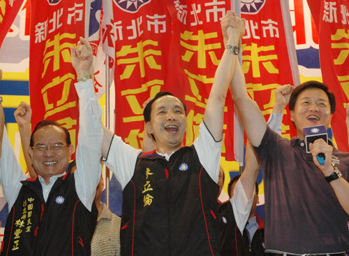 今天国民党台北县党部为党籍新北市长参选人朱立伦举办的第一大型造势活动,会场挤入约3千多名支持者,且台北县党籍“立委”、县议员几乎全数出席,高喊“肯定周锡玮、支持朱立伦”,让现场气氛High到最高点。