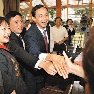 中新网6月3日电 据台湾《联合晚报》报道,台湾“双城大战”开始加温! 国民党台北市长参选人郝龙斌与新北市长参选人朱立伦,以“黄金十年、北北共荣”为题,3日上午首度举行联合记者会,两人双手紧握、双方助选团队人马与民代一字排开,“冻蒜”、加油声不断,营造双城合作的气势。