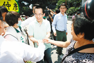 中新网6月7日电 综合台湾媒体报道,陈水扁之子陈致中7日北上台北,陪同民进党台北市议员参选人童仲彦在万华艋舺一带扫街拜票,虽然扁家最近汇回1亿多新台币,但对于11日扁案二审宣判,阿扁能否交保,陈致中也无把握,连说了三次“希望父亲早日回家团圆”。此外,陈致中还于一早去龙山寺上香祈福。