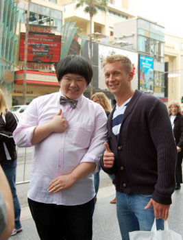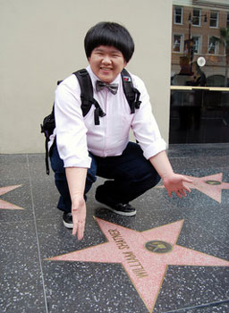 中新网4月23日电 据“中央社”报道,台“小胖”林育群23日前往洛杉矶好莱坞星光大道朝圣,因为网络上的高点击率与脱口秀节目的访问,小胖一路上频频被路人认出,还有老外call out,当场电话连线。