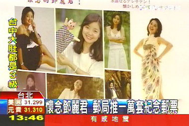 中新网4月26日电 据台湾TVBS报道,2010年是邓丽君逝世满15周年,邓丽君文教会特别和台北邮局合作,发行邓丽君的邮册,纪念邮票的照片从邓丽君第一张专辑的黑白照片,到日本NHK、香港红堪演唱会的封面,第一批发行1万册,一套卖399元。