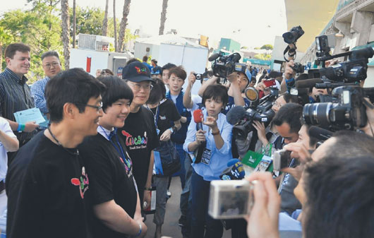 为求演唱完美,小胖在开赛前2小时就到道奇球场报到,站在大太阳底下进行练唱。在道奇主持人介绍下,小胖慢慢步入道奇队“LA”标志前,面向民众表演,当他演唱到美国国歌最后一段高音时,运用假音,让现场马上爆以如雷的掌声,连现场采访的海外媒体也忍不住喝彩,纷纷询问这个看似高中生的年轻人那里来的。