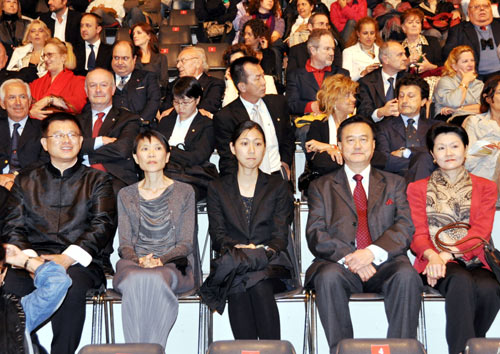 中新网6月24日电 台湾著名现代舞蹈表演团体云门舞集于当地时间22日晚在罗马郊区举办首场演出,担任荣誉团长的马英九夫人周美青盛装出席,女儿马唯中也专程飞来意大利观赏表演,两人成为会场中最引人注目的嘉宾。