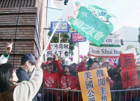 组图:旧金山华人抗议陈水扁过境美国