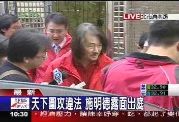 由于施明德在“双十节”当天号召“天下围攻”,被检方以违反“集会游行法”为由起诉后,6日“地院”开庭,施明德在身旁2名红衣男子戒护下,上车前往台北“地院”应讯。