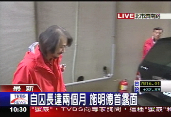 据台湾TVBS报道,脸色苍白,一头长发的施明德缓步走出自囚的寓宅,闭关长达2个月,精神状况看起来不是很好,而面对近来政局的转变,施明德未发表任何看法。