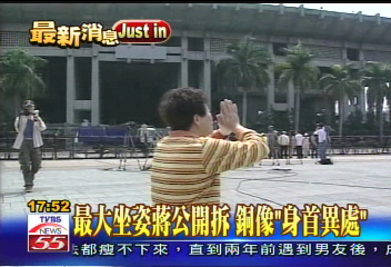 这座造价1200万元的铜像,只花费9500元就拆除,而且以形同戒严方式,全面封锁外界及媒体靠近,连文化中心官员进出都受影响,引起很大的反弹。