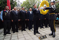 中新网4月5日电 今天是清明节,中国国民党荣誉主席连战中午率领前主席马英九等一级党务主管前往桃园县慈湖谒陵。