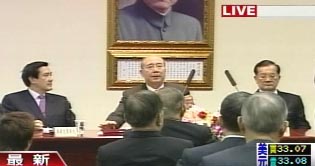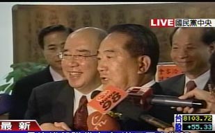据台湾TVBS 报道,新任党主席吴伯雄经过激烈的国民党主席补选,今日在国民党中央举行交接、就职典礼,蓝军天王齐聚一堂。