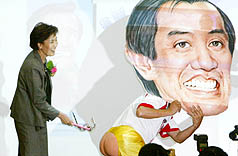 中新网4月25日电 挺马英九选08年地区领导人的“台湾九九家族网站”24日正式成立,包括马英九的大姐马以南和国民党副主席詹春柏都到场共襄盛举。网站将贩售许多马英九公仔周边商品, 这个网站及商品热卖程度,恐将打破当年的“扁帽工厂”规模。