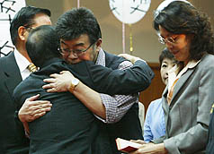 中新网4月26日电 国民党“立法院”党团昨天(25日)下午举办“揭弊斗士坐监惜别会”,党主席吴伯雄、“立法院长”王金平及国亲多名“立委”都到场为邱毅送行。