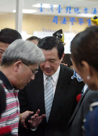 中新网5月8日电 国民党台湾地区领导人候选人马英九在台北市长任内特别费案今天(8日)第三度开庭,马英九在上午9时15分准时出庭,受到支持群众的热烈欢迎。